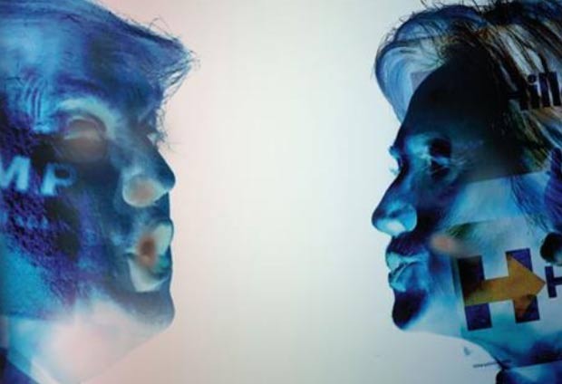 Embora em negativo, a imagem de Hillary à direita, enquanto à esquerda aparece a do candidato republicano Donald Trump, está na edição inglesa desta semana do “Hamishpachá” (A família), um dos principais meios de comunicação da comunidade ultra-ortodoxa.