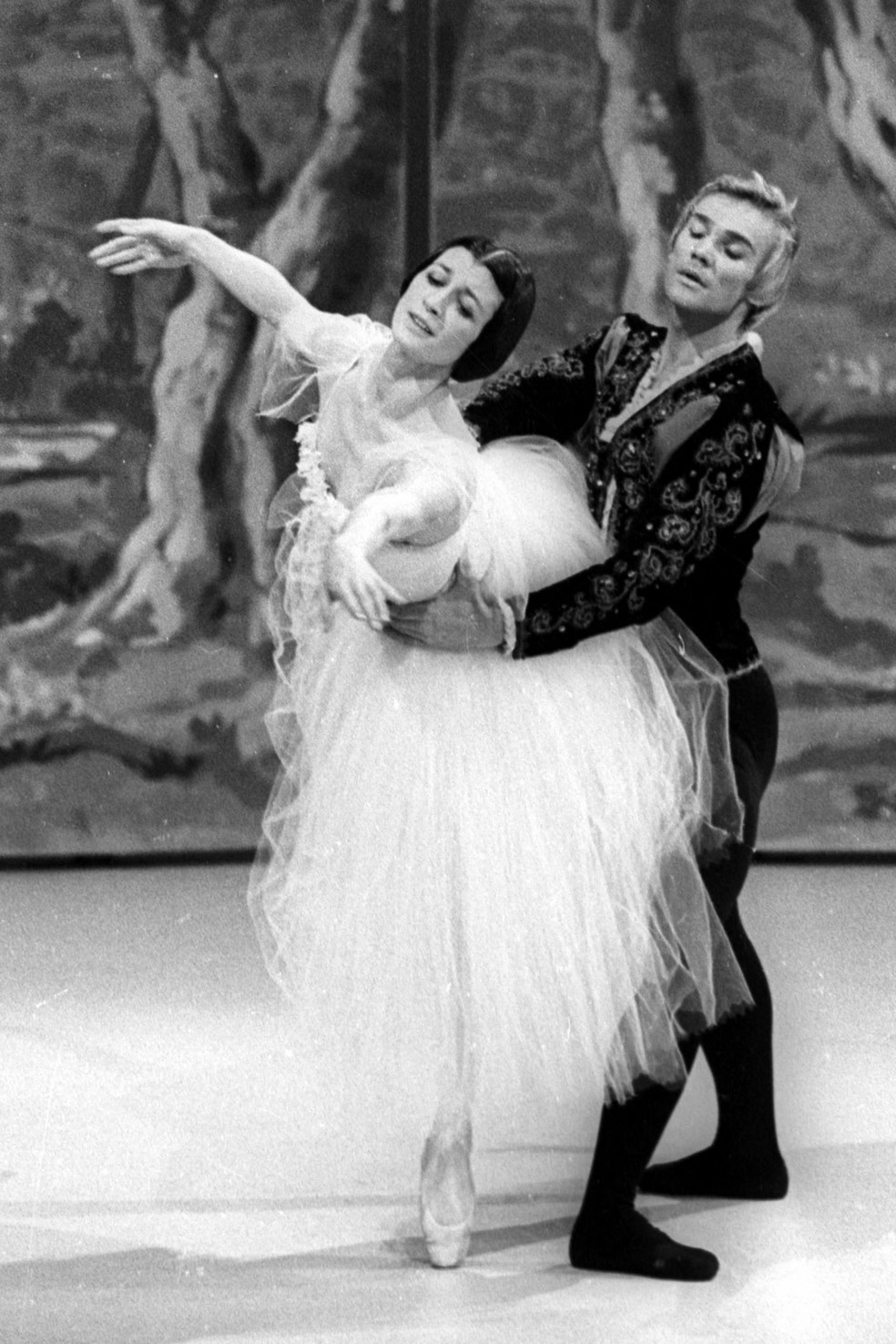 Vladimir Vassiliev, bailarino russo, e Carla Fracci apresentando ‘Giselle’ em Roma, Itália, em março de 1972. — (Foto: Stringer/Ansa/AFP)