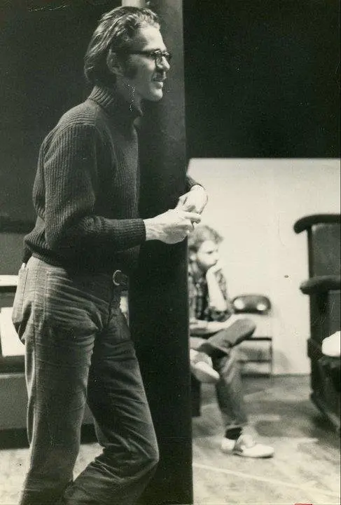 Shepherd conduzindo um workshop de improvisação em 1970. Durante o último meio século, ele voltou frequentemente à improvisação como forma de entretenimento e ferramenta para o bem social. (Crédito da fotografia: Coleção de David Shepherd)