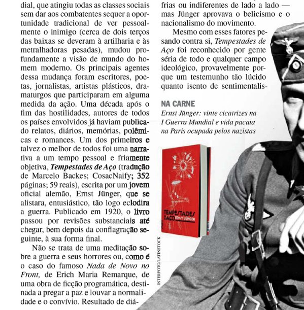 Muitos críticos na Alemanha e no exterior elogiaram o trabalho do Sr. Junger porque ele não censurava eventos ou pensamentos, mas os apresentava conforme ocorriam. Seus livros subsequentes incluíram ”Combat as an Internal Experience”, ”Storm”, ”The Copse” e ”Fire and Blood”. Esses livros, cheios do que um crítico mais tarde chamou de ”pathos bombástico”, fizeram dele o queridinho dos movimentos nacionalistas radicais nascentes, incluindo o Partido Nacional Socialista dos Trabalhadores Alemães de Adolf Hitler. De fato, o Sr. Junger contribuiu com um artigo em 1923 para seu jornal, Volkischer Beobachter, defendendo o nacionalismo revolucionário e uma ditadura.