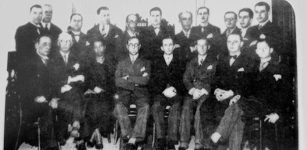 Antonieta (3ª pessoa sentada, da esq. para a dir.) com os colegas deputados na posse, em 1935