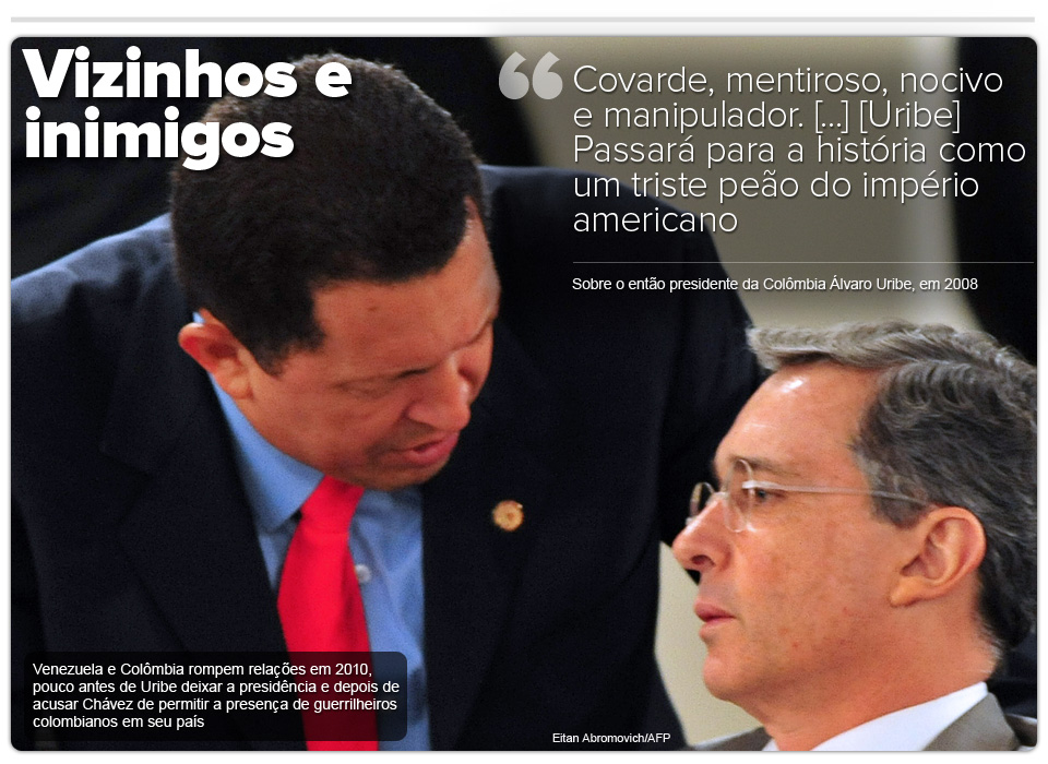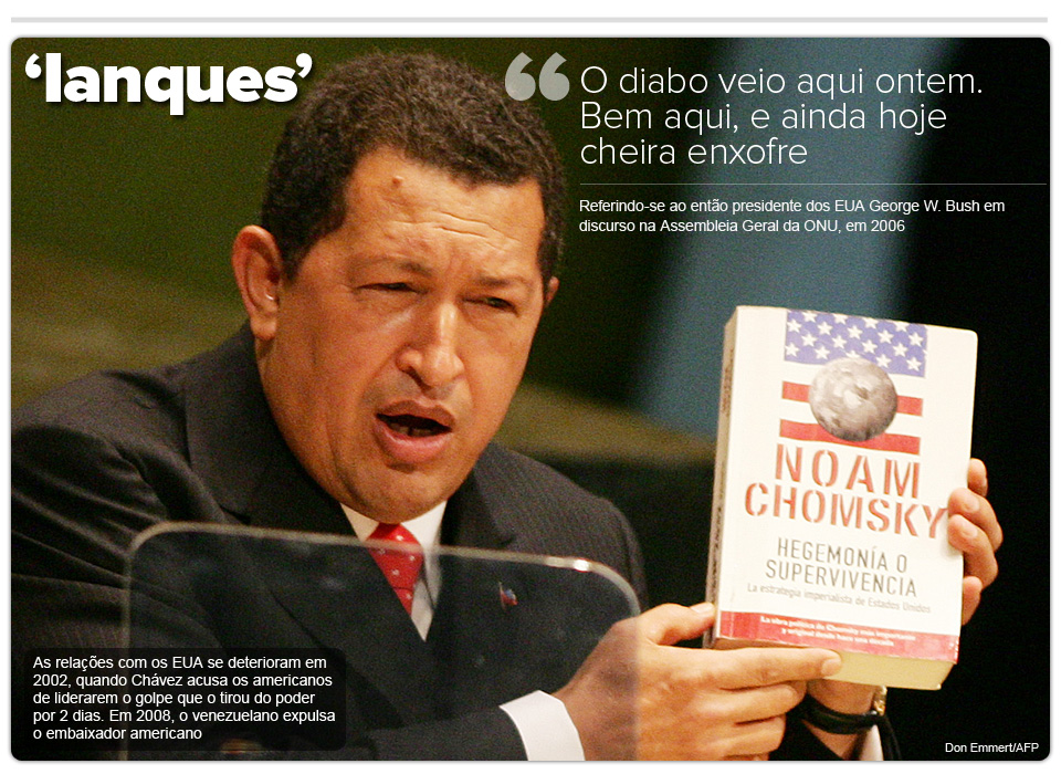 O presidente venezuelano tratava outros líderes internacional com intensidade, respeito ou desprezo, chegando a dizer que havia sentido cheiro de “enxofre” na tribuna da Assembleia Geral da ONU, em 2007, após ter passado pelo então presidente americano, George W. Bush, que já foi chamado por Chávez de bêbado e genocida.