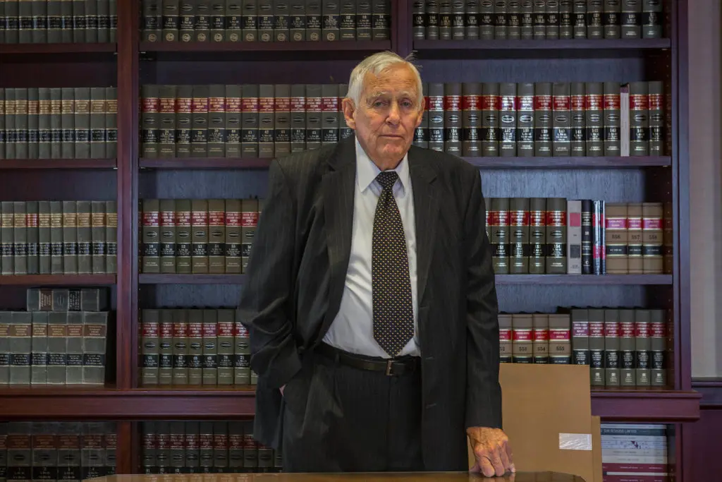 O Juiz Kevin Thomas Duffy em 2016 em seus aposentos no Tribunal Distrital Federal em Manhattan. Ele podia ser tão duro quanto era colorido no banco. (Crédito da fotografia: Hiroko Masuike/The New York Times)