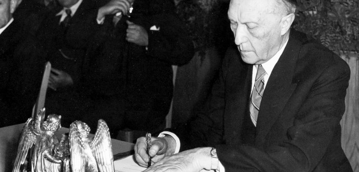 No dia 22 de janeiro de 1963, o chanceler federal alemão Konrad Adenauer e o presidente francês Charles de Gaulle assinaram, em Paris, o tratado da amizade franco-alemã.