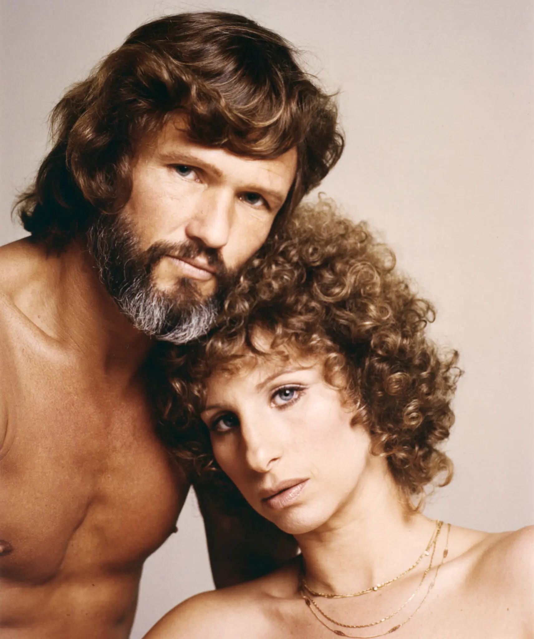 Kris Kristofferson e Barbra Streisand no set de “Nasce uma Estrela”. Crédito…Sunset Boulevard/Corbis, via Getty Images