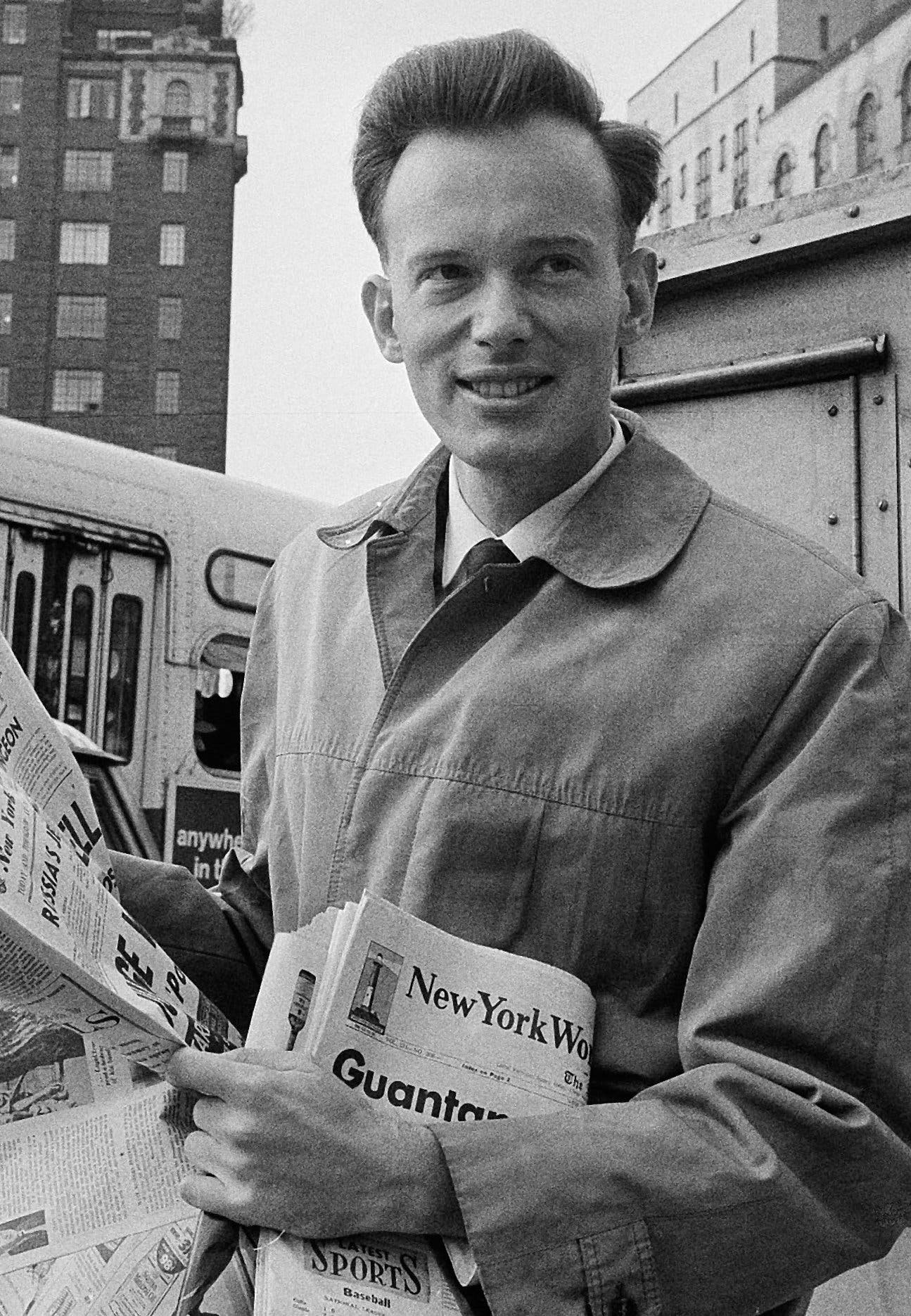 Nesta foto de arquivo de 4 de maio de 1964, Malcolm Browne, então correspondente da Associated Press no Vietnã, perto da casa de seus pais em Nova York, após ganhar o Prêmio Pulitzer. (Crédito da fotografia: Cortesia © Copyright All Rights Reserved/ Associated Press ®/ REPRODUÇÃO/ TODOS OS DIREITOS RESERVADOS)