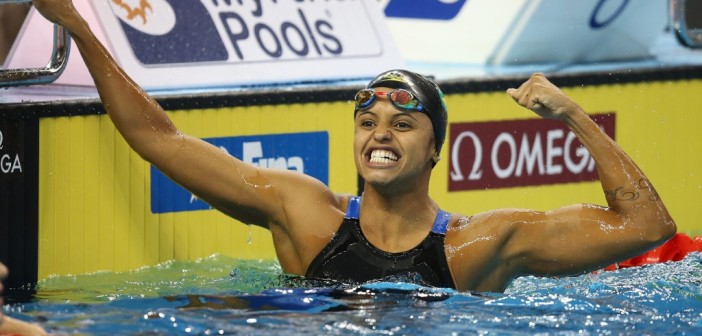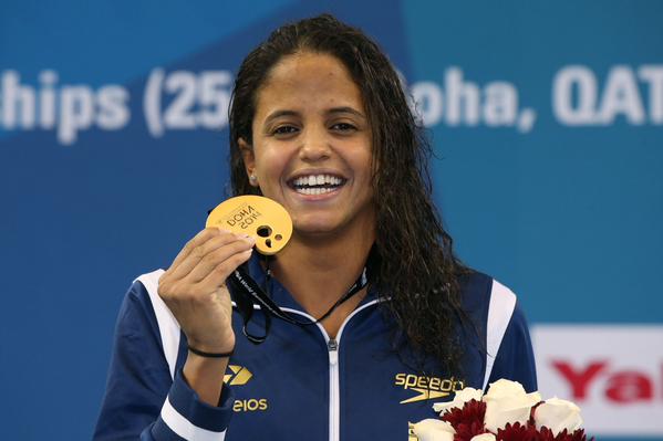Ela foi a primeira brasileira campeã e recordista mundial dos 50m costas em piscina curta, feito alcançado no Mundial de 2014, no Qatar. Agora, entra para a história verde-amarela em Pans como o primeiro ouro do país.