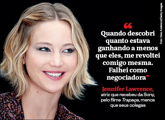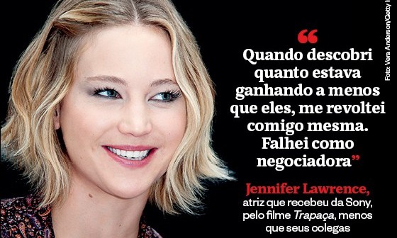 Jennifer Lawrence, atriz que recebeu da Sony, pelo filme Trapaça, menos que seus colegas