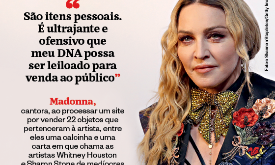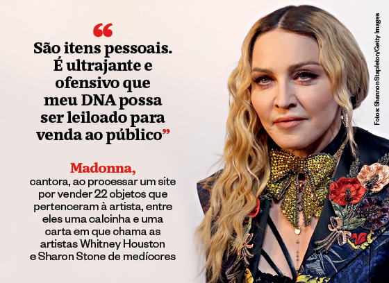 Madonna, cantora, ao processar um site por vender 22 objetos que pertenceram à artista, entre eles uma calcinha e uma carta em que chama as artistas Whitney Houston e Sharon Stone de medíocres