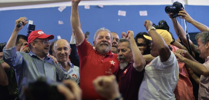 Luiz Inácio Lula da Silva, ex-presidente, apos ser forçado a prestar depoimento à Polícia Federal, em manifestação logo depois de seu depoimento