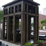 O monumento é sustentado por 8 vigas apresentando a cor marron e negra. Possui o mesmo aspécto que lembra a casa onde viveu. No centro, na base tumular há um vaso de bronze.