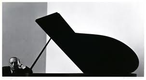 Em uma de suas mais famosas fotografias, Newman fez um rigoroso enquadramento e compara a anatomia do compositor Igor Stravinsky à de seu piano.