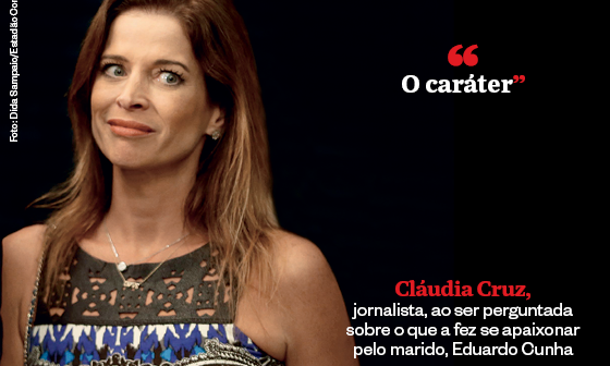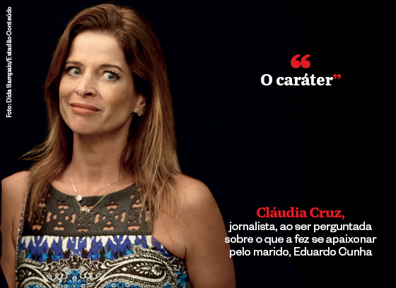 “O caráter.” Cláudia Cruz, jornalista, ao ser perguntada sobre o que a fez se apaixonar pelo marido, Eduardo Cunha