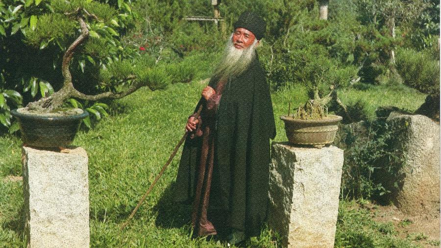O pintor chinês Chang Dai-chien, conhecido como “Picasso da China”, no Jardim das Oito Virtudes, em São Paulo (Imagem: Wang Ze-I)