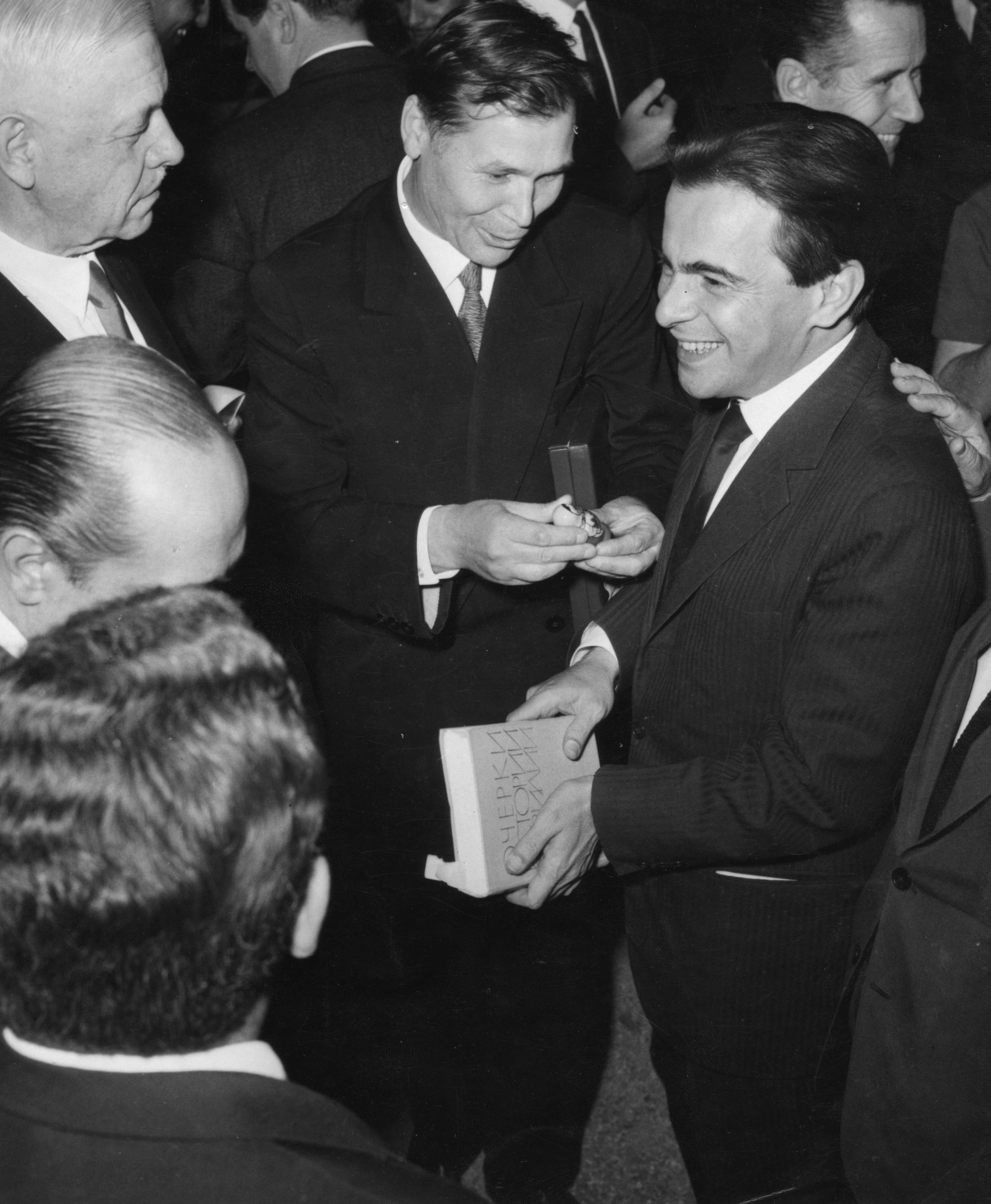 O professor Darcy Ribeiro (à dir.), Chefe da Casa Civil da Presidência da República, durante solenidade de entrega do Prêmio Lênin da Paz ao arquiteto Oscar Niemeyer (15.jun.1963. Foto: Acervo UH/Folhapress)
