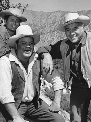 Landon; sentado, Dan Blocker; à direita, Lorne