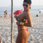 Déborah Caetano, rainha de bateria da escola de samba Nenê de Vila Matilde, de São Paulo, “pagou peitinho” quando resolveu tomar uma ducha na praia de Copacabana, no Rio de Janeiro.