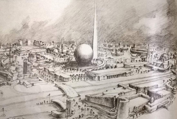- Desenho panorâmico da Feira Mundial de Nova York de 1939. (The Illustrated London News, 1939)