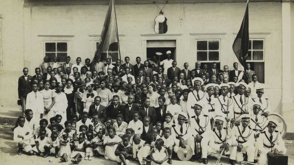 Imagem de militantes da Frente Negra Brasileira em uma delegação da entidade (local não identificado) – (Foto: Biblioteca Nacional / BBC News Brasil)