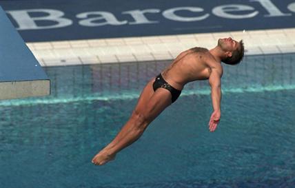 O atleta norte-americano Mark Lenzi, medalha de ouro nos saltos para a água nos Jogos Olímpicos de Barcelona.