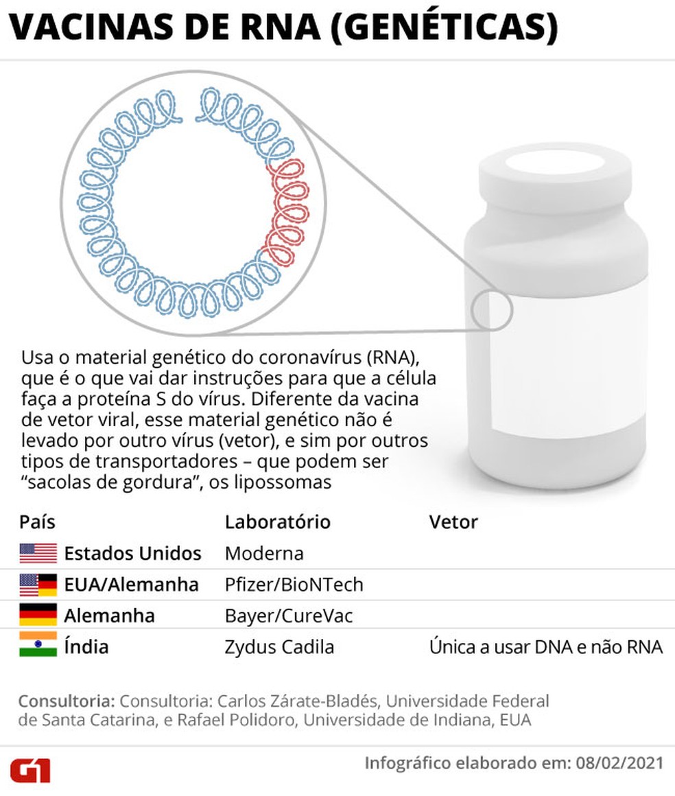 Infográfico mostra como funcionam vacinas de RNA contra o coronavírus — (Foto: Anderson Cattai/G1)