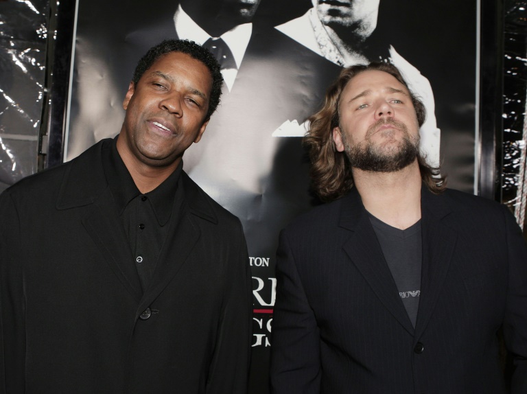 Denzel Washington e Russell Crowe na estreia do filme “Gângster”, inspirado na vida de Frank Lucas. – (Foto: Getty Images North America/Getty Images/AFP)