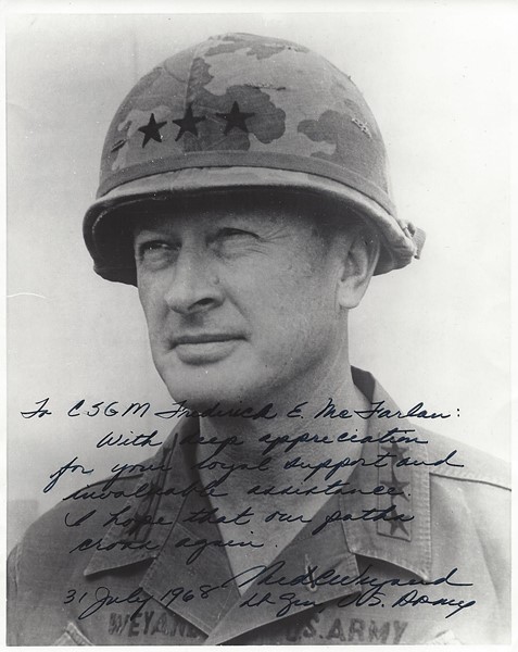 Dois anos depois, o General Weyand sucedeu o General Abrams como comandante das forças americanas e, em 1973, foi nomeado comandante em chefe de todas as forças do Exército no Pacífico. Mais tarde naquele ano, ele sucedeu o general Alexander Meigs Haig como vice-chefe de gabinete do Exército. Quando o general Abrams morreu em 1974, ano em que as forças americanas se retiraram do Vietnã, o general Weyand foi nomeado seu sucessor como chefe de gabinete.