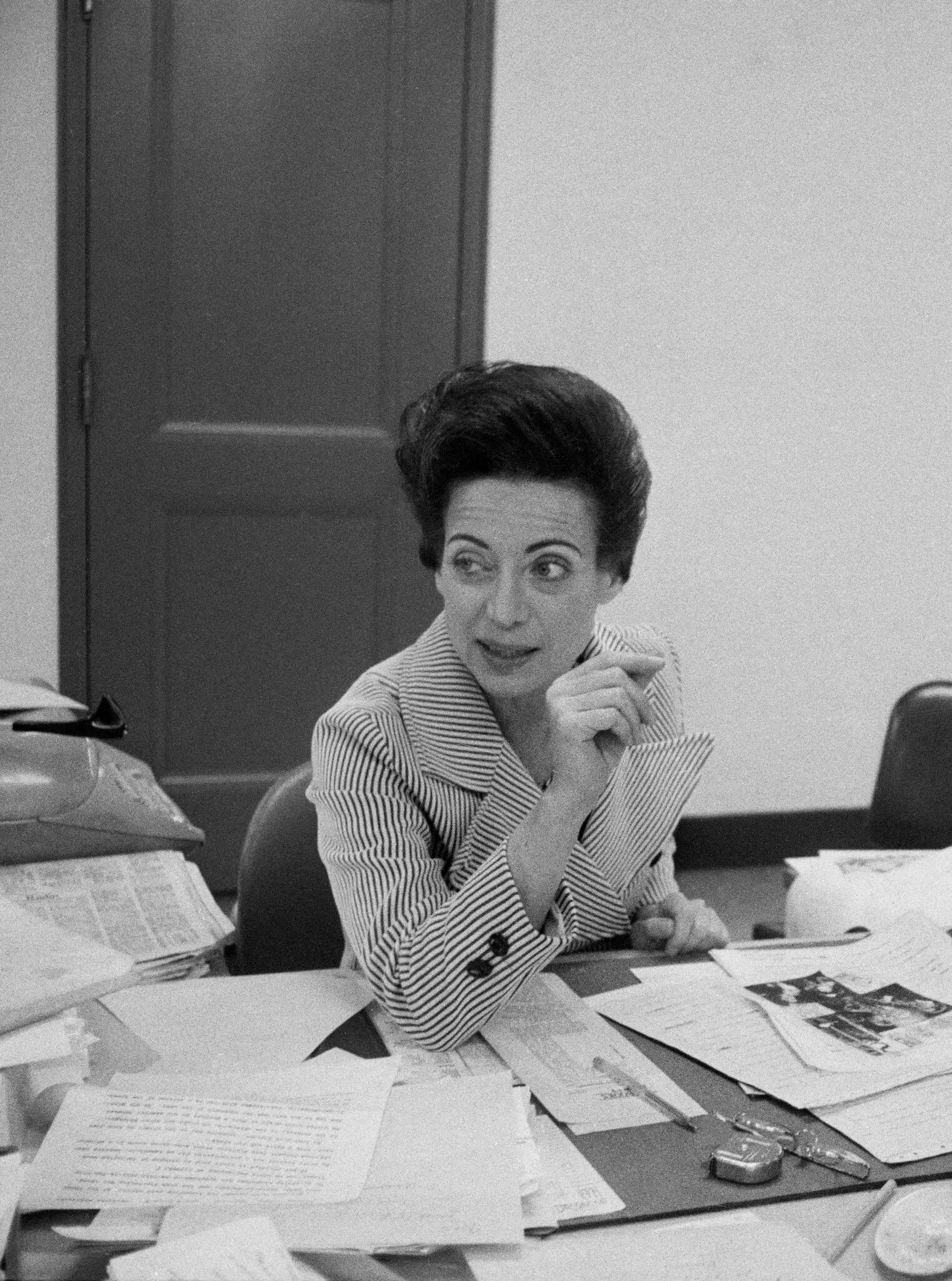 “Entrei em seu enorme escritório estilo Mussolini”, disse ela na história oral, “ele se levanta de sua mesa, passa as mãos em meus lábios e diz: ‘Você está com muito batom’”.