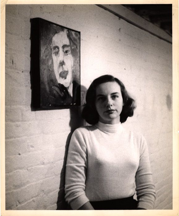 Hartigan com um autorretrato, 1951. Grace Hartigan Papers, Special Collections Research Center, Syracuse University Libraries.