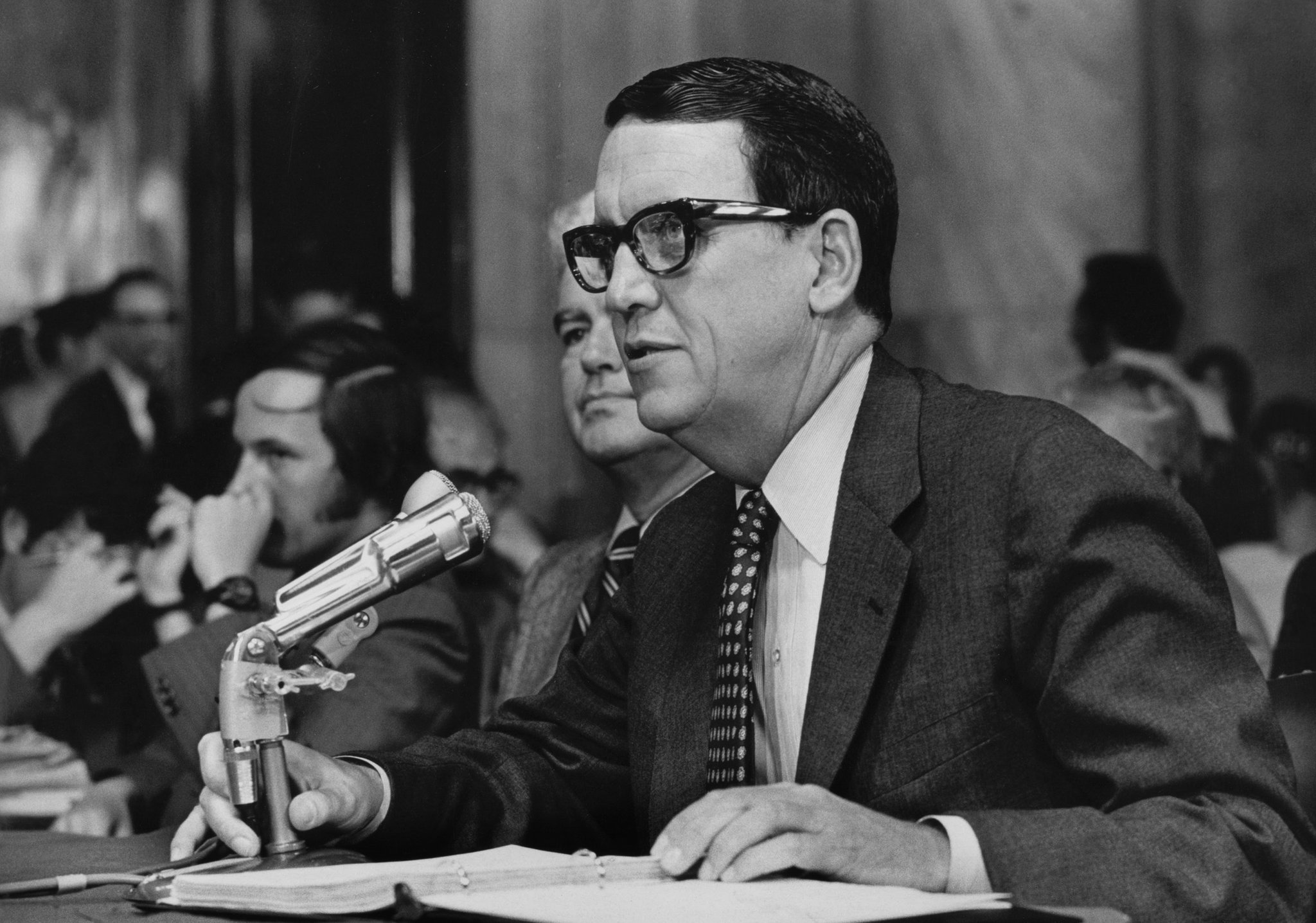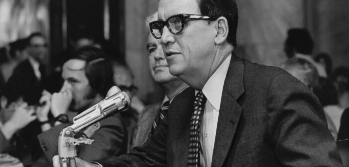 Herbert W. Kalmbach testemunhando durante as audiências do Senado sobre Watergate em 1973. (Crédito da fotografia: Cortesia © Copyright All Rights Reserved/ © Divulgação/ The New York Times ®/ REPRODUÇÃO/ TODOS OS DIREITOS RESERVADOS)