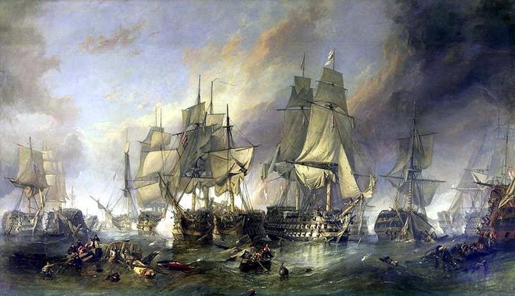 Pintura de Clarkson Stanfield Frederick retratando a decisiva Batalha de Trafalgar. (Crédito: DIREITOS RESERVADOS)
