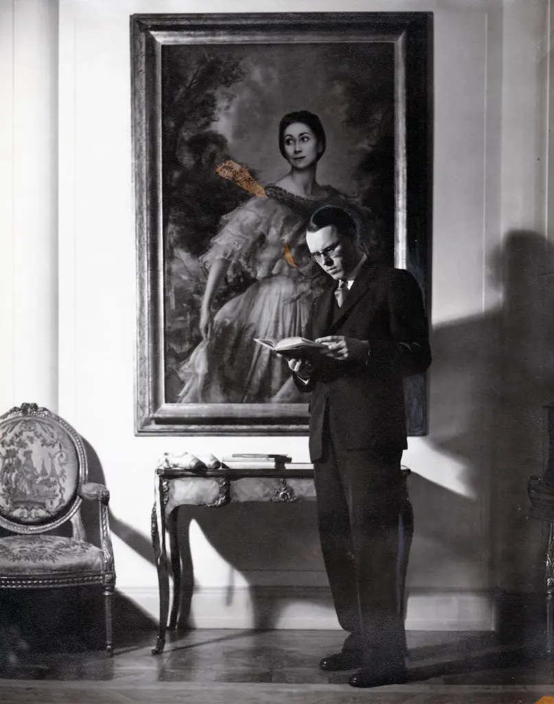 Ivor Guest em 1957. O retrato é da bailarina inglesa Margot Fonteyn, feito por Pietro Annigoni. (Crédito da fotografia: Cortesia © Copyright All Rights Reserved/ Mike Davis; Pintura: 2018 Artists Rights Society (ARS), Nova York/Siae, Roma ®/ REPRODUÇÃO/ TODOS OS DIREITOS RESERVADOS)