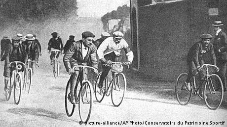 Em 1870, a bicicleta alta foi superada pela “normal”, mais baixa, com correia dentada e pneu com câmera de ar. A famosa corrida ciclística Volta da França aconteceu pela primeira vez em Paris em 1º de julho de 1903, com 60 participantes. Entre as etapas estavam Lyon, Marselha, Toulouse, Bordeaux e Nantes. A competição, de 2.428 quilômetros, foi vencida pelo francês Maurice Garin (camisa clara).