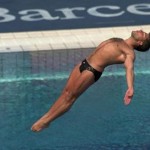 O atleta norte-americano Mark Lenzi, medalha de ouro nos saltos para a água nos Jogos Olímpicos de Barcelona.