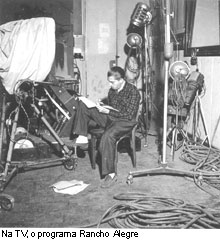 1950: em 18 de setembro, é inaugurada a primeira emissora de televisão brasileira, a TV Difusora de São Paulo, canal 3. Convidado para o show de estreia, Mazzaropi torna-se o primeiro humorista na TV. Inicialmente, à semelhança da rádio, apresenta-se sozinho, mas em poucos dias, a direção resolve lançar o programa RANCHO ALEGRE com Amácio e a atriz Geny Prado. Toda 4ª feira, às 21h00, sob a direção de Cassiano Gabus Mendes e patrocínio da Philco, o primeiro patrocinador da TV brasileira.