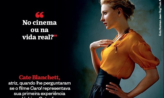 Cate Blanchett, atriz, quando lhe perguntaram se o filme Carol representava sua primeira experiência como lésbica. Cate disse que namorou mulheres “várias vezes”.
