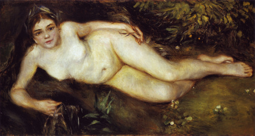 Há ainda outras telas importantes, como Na Campina (1890), do acervo do Metropolitan, e A Dança em Bougival (1883), que integra uma série que ele fez sobre o tema. Uma das principais fontes de renda de Renoir era criar retratos, esses quadros eram feitos sob encomenda para famílias abastadas. Fez centenas deles, mas também, retratou seus filhos, amigos e amantes, como a bela Lisi Tréhot (1848-1922), que aparece em Mulher Seminua Deitada (1872).