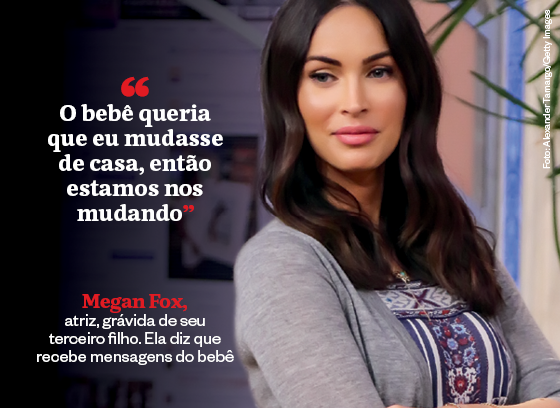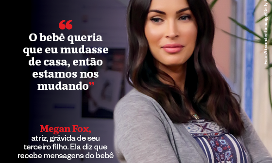 Megan Fox, atriz, grávida de seu terceiro filho. Ela diz que recebe mensagens do bebê