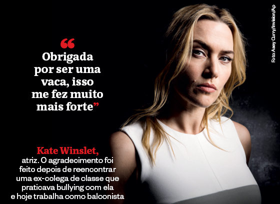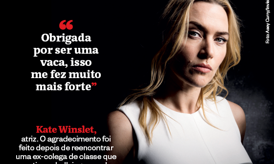 Kate Winslet, atriz. O agradecimento foi feito depois de reencontrar uma ex-colega de classe que praticava bullying com ela e hoje trabalha como balconista