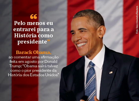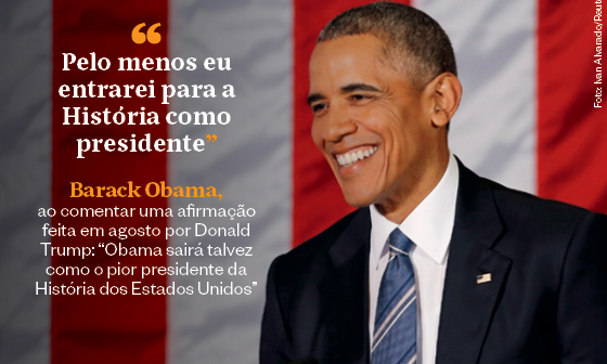 “Pelo menos eu entrarei para a História como presidente.” Barack Obama, ao comentar uma afirmação feita em agosto por Donald Trump: “Obama sairá talvez como o pior presidente da História dos Estados Unidos”
