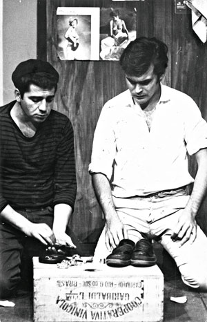 ESTREIA – Plínio Marcos e Ademir Rocha na primeira montagem de “Dois Perdidos numa Noite Suja”, no teatro de Arena, SP, em 1966 (Crédito:Derly Marques)