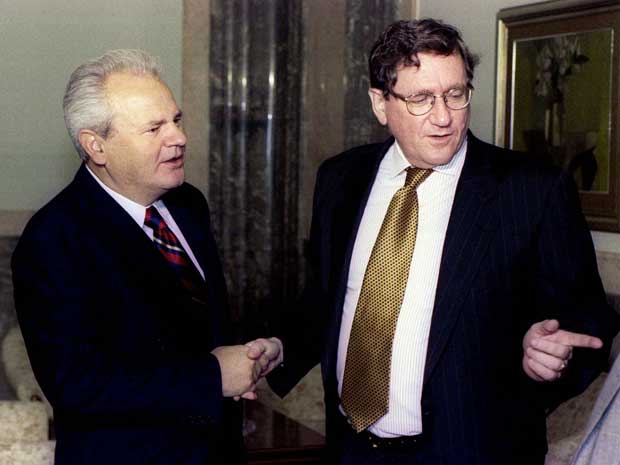 Richard Holbrooke e o presidente sérvio Slobodan Milosevic, em Belgrado, em setembro de 1996. (Foto: Arquivo / Reuters)