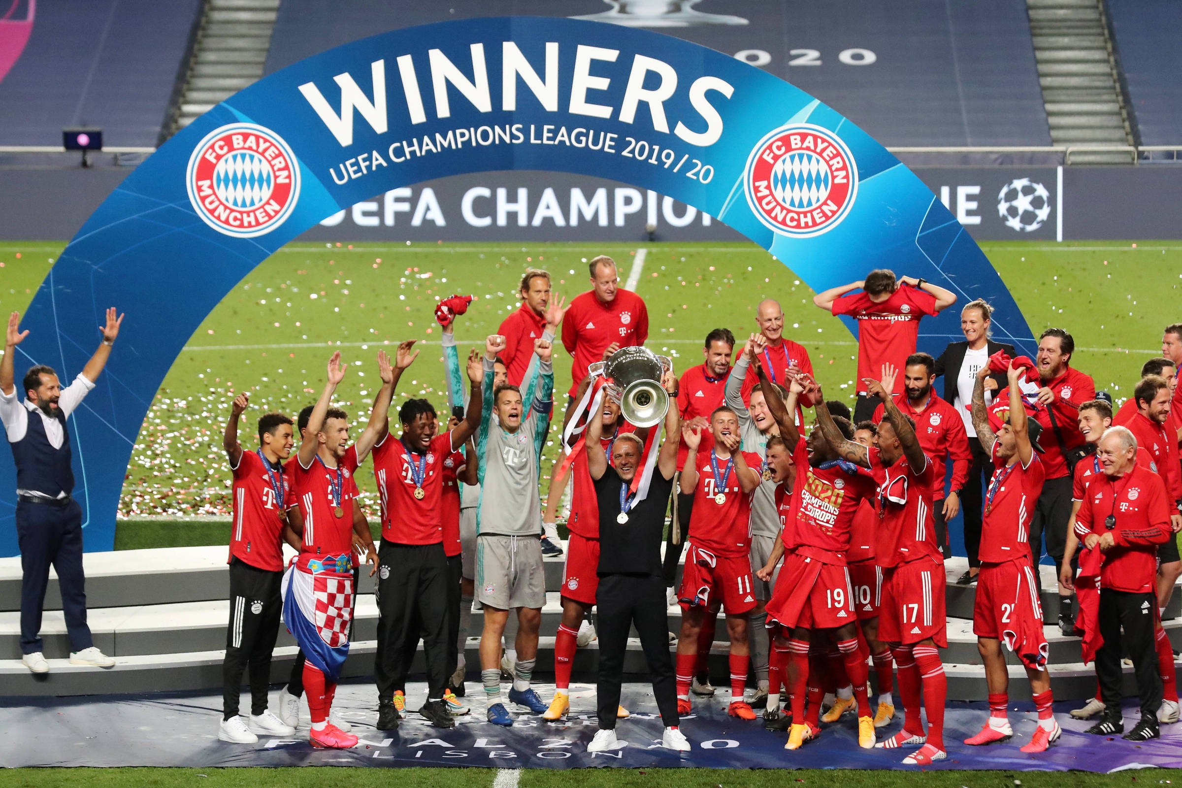 O Bayern derrapou o suficiente para trocar de técnico em novembro. Hansi Flick entrou no lugar de Niko Kovac e não apenas recolocou o time no caminho das vitórias, como transformou este time numa das melhores versões da história do clube. Ganhou o Campeonato Alemão com folga, a Copa da Alemanha na sequência com goleada na final e selou a Tríplice Coroa (repetindo a temporada 2012/13) neste domingo depois de grandes exibições em Portugal. São 34 vitórias (21 seguidas), um empate e duas derrotas em 37 jogos. É para aplaudir o antigo auxiliar de pé.