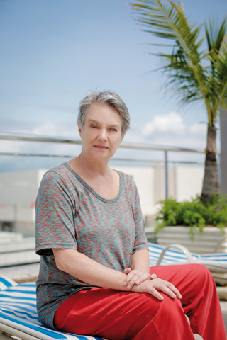 Selma Egrei apareceu no hall do hotel onde a Globo a está hospedando, na Barra da Tijuca, vestindo uma camiseta estampada largona, calça vermelha estilo pijamão e Crocs cor-de-rosa – zero maquiagem. Ela está no Rio por conta da pré-produção da próxima novela das 9, Velho Chico, de Benedito Ruy Barbosa, na qual fará a mãe de Rodrigo Santoro, na primeira fase, e a de Antonio Fagundes, na segunda. A personagem integra o núcleo rico da história, que se passa às margens do Rio São Francisco e vai da época da ditadura e até os dias atuais. “Meu personagem começa com 48 anos e termina com 100. Sou a veia louca.” O diretor Luiz Fernando Carvalho buscava uma atriz que tivesse preservado as marcas do tempo no rosto para interpretar com fidedignidade a personagem amargurada. Carvalho explicou a Selma que não é fácil encontrar uma atriz de 66 anos “normal” (sem intervenções cirúrgicas). “Ele disse: ‘Suas rugas favorecem, me interessa a sua ‘vivência’”, diz, rindo.