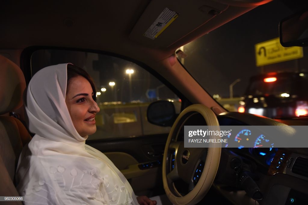 SAMAR AL-MOGREN, dirigindo um carro na Arábia Saudita, onde a permissão a mulheres para tirar a carteira de motorista entrou em vigor no dia 24 de junho. Foi o último país do mundo a fazê-lo