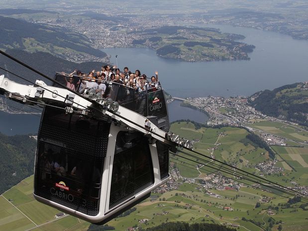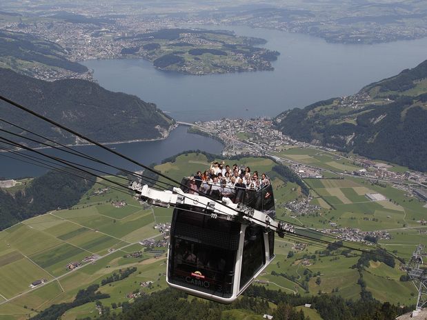 O recém-construído sistema Cabrio oferece uma incrível vista durante o seu trajeto na montanha Stansehorn, próximo a Lucerna.